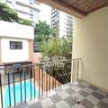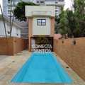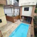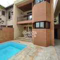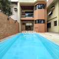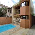 Piscina e edícula. Na casa frontal temos 2 vagas descobertas, amplo salão, com um banheiro. Piso superior é constituído por 1 sala ampla, 1 banheiro e varanda. Dividindo a casa frontal da edícula temos uma piscina com churrasqueira. Nos fundos encontra-se a edícula, concentrando-se 1 cozinha completa e 1 banheiro no piso inferior.