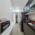 Ficará no imóvel: Guarda-roupa, armários da cozinha, Cooktop, geladeira, cama, balcão do quarto e o ar condicionado de 18 mil BTUs.